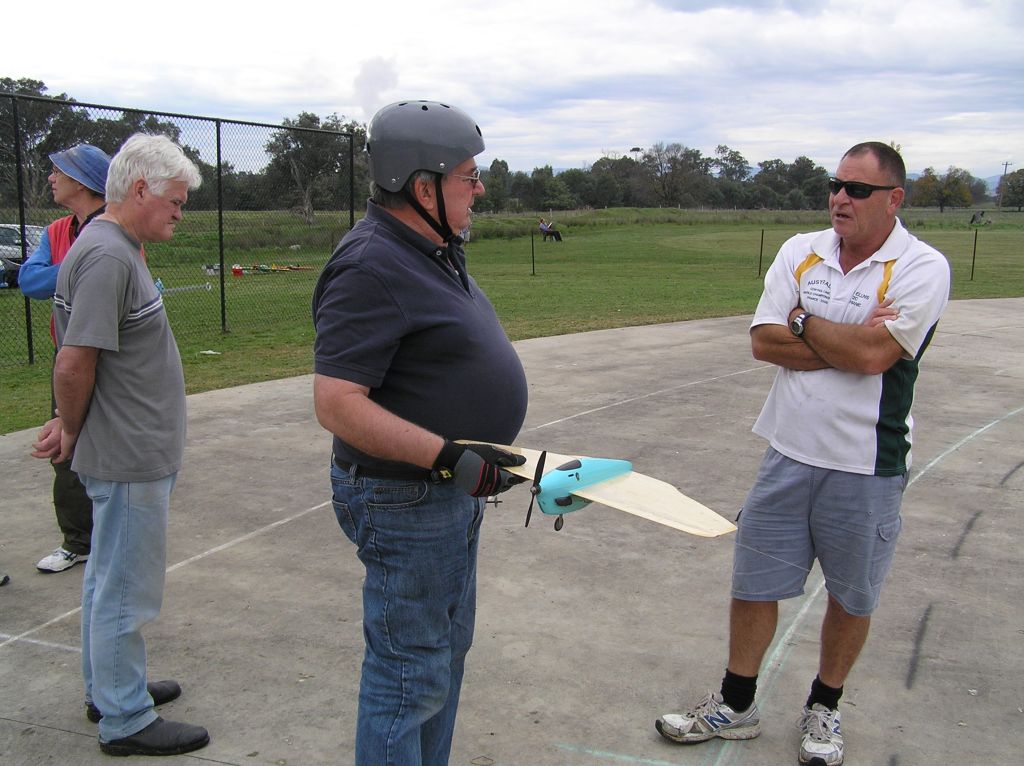 Having Ric Justic on your team can only be described as a bonus!  That’s either pitting or flying.  Flying for Paul, the team made 4.22.75 and pitting for John, they made 4.22.72.  3/100th of a second decided 2nd spot in the final!!  So much for this ‘rounding off times’ nonsense.  Ron Lacey had Murray flying for him and they did a best of 4.23.78,  just over a second away from a place in the final.  Next time, Ron!  As this Albury fun fly was very much a ‘mix ’n’ match’ affair, Ron did get a second chance to fly the final, this time pitting for John Hallowell.