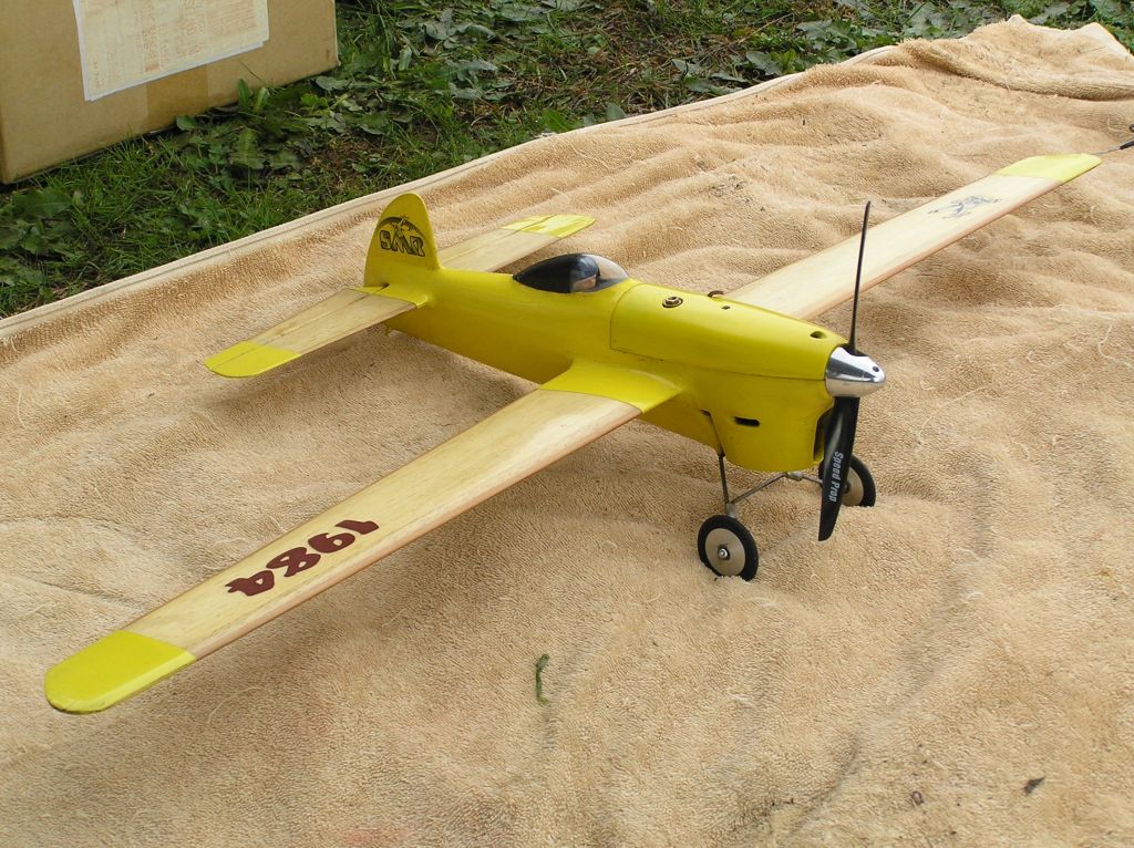 Perky attracted a good number of entries and some entertaining flying in the Pylon.  Much like Harry’s Proto (Class 2 racer) the Perkys were generally easy running and starting setups, allowing for some needle twiddling and comp. twisting between attempts. All except Paul Stein’s apparently loaner G20/15.  This seemed touchy to tune and hard to start, as well as being a little down on ultimate power. Time for a rebuild… or just give it back and change powerplants? Richard Justic’s monoline 60 model only came out twice.   Once with him hanging on (literally) and then with Murray Wilson having his left arm stretched to match his right. Steve Rothwell’s audio tach showed it was only reaching 18K RPM in air so it’s definitely overloaded, but is still a reasonable performer for a stock standard Rossi 61.