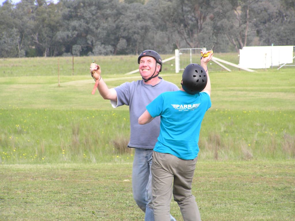 Having Ric Justic on your team can only be described as a bonus!  That’s either pitting or flying.  Flying for Paul, the team made 4.22.75 and pitting for John, they made 4.22.72.  3/100th of a second decided 2nd spot in the final!!  So much for this ‘rounding off times’ nonsense.  Ron Lacey had Murray flying for him and they did a best of 4.23.78,  just over a second away from a place in the final.  Next time, Ron!  As this Albury fun fly was very much a ‘mix ’n’ match’ affair, Ron did get a second chance to fly the final, this time pitting for John Hallowell.