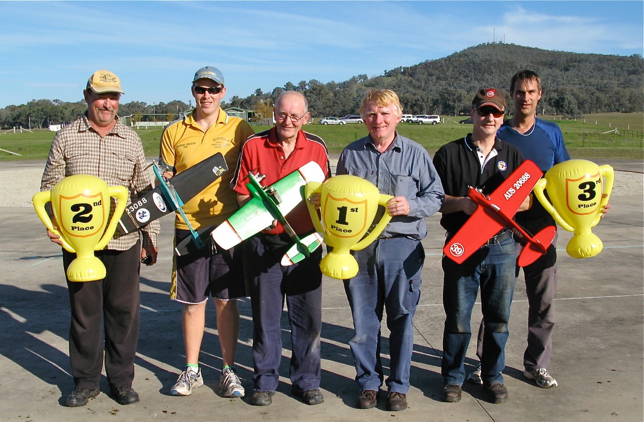 Having Ric Justic on your team can only be described as a bonus! That’s either pitting or flying. Flying for Paul, the team made 4.22.75 and pitting for John, they made 4.22.72. 3/100th of a second decided 2nd spot in the final!! So much for this ‘rounding off times’ nonsense. Ron Lacey had Murray flying for him and they did a best of 4.23.78, just over a second away from a place in the final. Next time, Ron! As this Albury fun fly was very much a ‘mix ’n’ match’ affair, Ron did get a second chance to fly the final, this time pitting for John Hallowell.