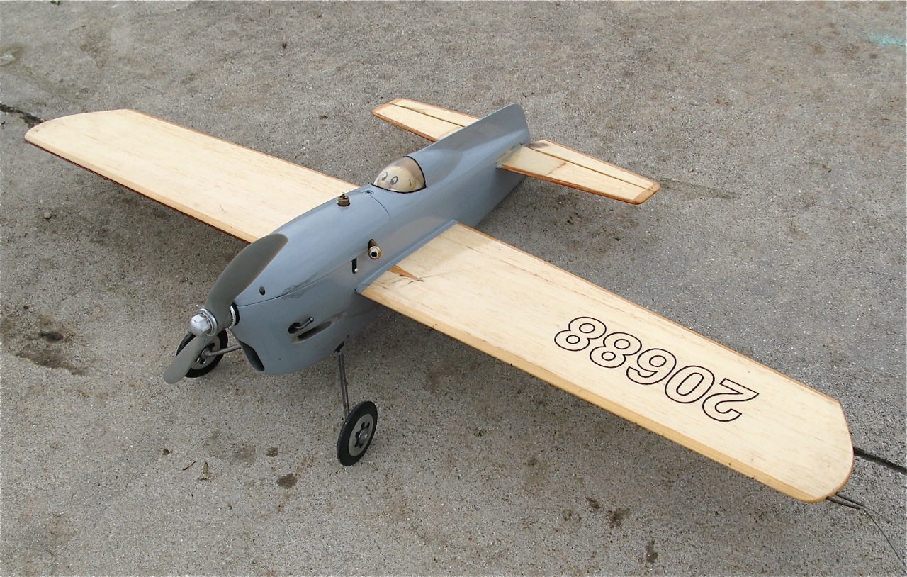 Perky attracted a good number of entries and some entertaining flying in the Pylon. Much like Harry’s Proto (Class 2 racer) the Perkys were generally easy running and starting setups, allowing for some needle twiddling and comp. twisting between attempts. All except Paul Stein’s apparently loaner G20/15. This seemed touchy to tune and hard to start, as well as being a little down on ultimate power. Time for a rebuild… or just give it back and change powerplants? Richard Justic’s monoline 60 model only came out twice. Once with him hanging on (literally) and then with Murray Wilson having his left arm stretched to match his right. Steve Rothwell’s audio tach showed it was only reaching 18K RPM in air so it’s definitely overloaded, but is still a reasonable performer for a stock standard Rossi 61.