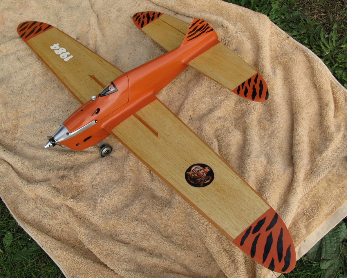 Perky attracted a good number of entries and some entertaining flying in the Pylon.  Much like Harry’s Proto (Class 2 racer) the Perkys were generally easy running and starting setups, allowing for some needle twiddling and comp. twisting between attempts. All except Paul Stein’s apparently loaner G20/15.  This seemed touchy to tune and hard to start, as well as being a little down on ultimate power. Time for a rebuild… or just give it back and change powerplants? Richard Justic’s monoline 60 model only came out twice.   Once with him hanging on (literally) and then with Murray Wilson having his left arm stretched to match his right. Steve Rothwell’s audio tach showed it was only reaching 18K RPM in air so it’s definitely overloaded, but is still a reasonable performer for a stock standard Rossi 61.