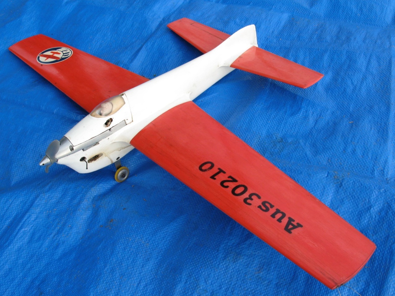 Perky attracted a good number of entries and some entertaining flying in the Pylon.  Much like Harry’s Proto (Class 2 racer) the Perkys were generally easy running and starting setups, allowing for some needle twiddling and comp. twisting between attempts. All except Paul Stein’s apparently loaner G20/15.  This seemed touchy to tune and hard to start, as well as being a little down on ultimate power. Time for a rebuild… or just give it back and change powerplants? Richard Justic’s monoline 60 model only came out twice.   Once with him hanging on (literally) and then with Murray Wilson having his left arm stretched to match his right. Steve Rothwell’s audio tach showed it was only reaching 18K RPM in air so it’s definitely overloaded, but is still a reasonable performer for a stock standard Rossi 61.
