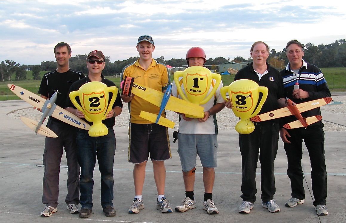 Having Ric Justic on your team can only be described as a bonus! That’s either pitting or flying. Flying for Paul, the team made 4.22.75 and pitting for John, they made 4.22.72. 3/100th of a second decided 2nd spot in the final!! So much for this ‘rounding off times’ nonsense. Ron Lacey had Murray flying for him and they did a best of 4.23.78, just over a second away from a place in the final. Next time, Ron! As this Albury fun fly was very much a ‘mix ’n’ match’ affair, Ron did get a second chance to fly the final, this time pitting for John Hallowell.