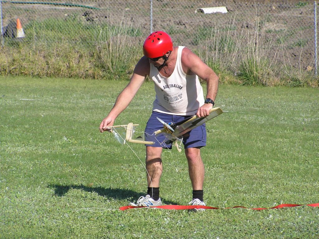 The Speed boys were out flying early with some superbly build flying machines. A few of the regular Perky Speed competitors  were not in attendance but will be back for the next comp! The regular ‘Michelin’ rated CLAMF BBQ lunch followed with some time-out to catch up on the latest news. Vintage Combat commenced mid-afternoon with lots of spills and thrills as the 5  pilots battled it out for supremacy. Tony Caselli took out first place followed by Mark Ellins and Ken Maier.