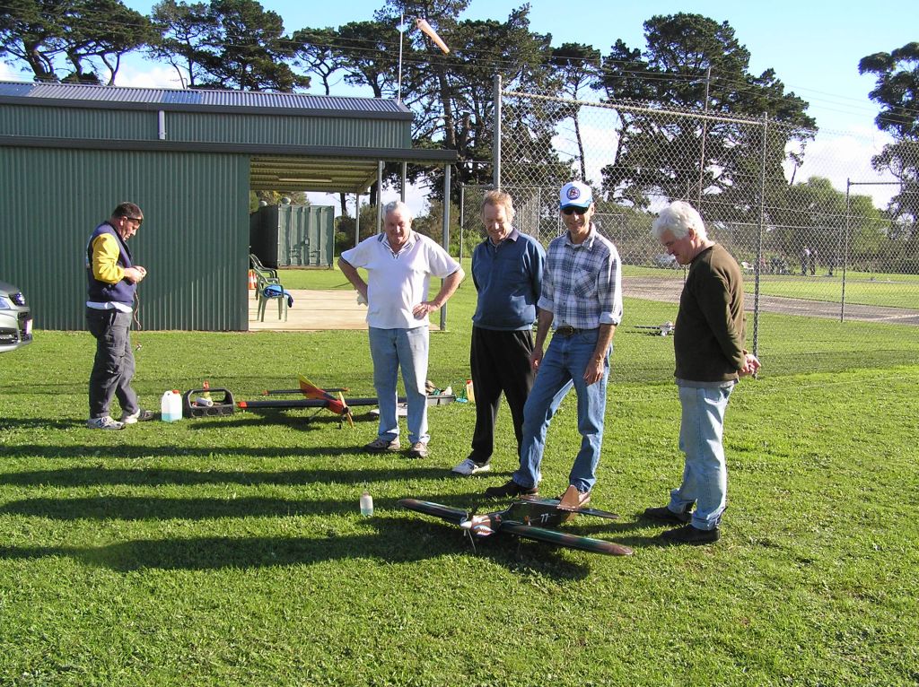 Gavan Opperman also had quite a few flights with his LA 46 Mirage. The wind then sprang up for a while and most of the stunters were put back in their hangers (read backs of cars) before the breeze died down and they were brought out again.  Can’t let good flying conditions pass by!