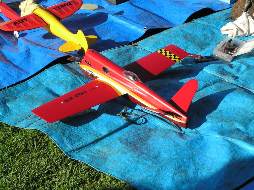 Robin had strained shoulder muscles , so he flew left handed so as not to aggravate the condition. He also flew some of his older and slower models. It was good to see Noel Wake back in the thick of the speed action after recovering from his recent health setback.  Vern Marquet had a trouble free day flying his reliable K&B 29R Vintage Proto racer.
