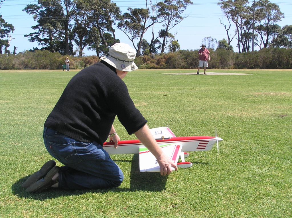 Mark did a delectable job on the BBQ twirling the sausages, with everyone enjoying the lunch break and a social chat before a second round of stunt and some corflute combat bouts from Ken and Tony.