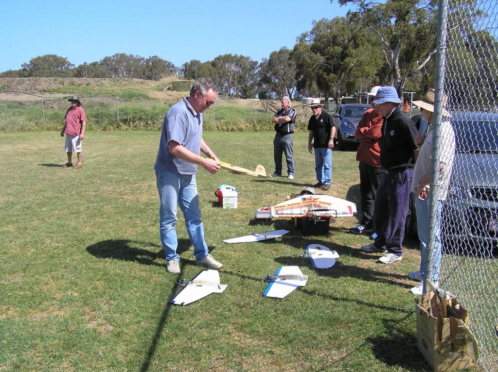 Highlight of the day for me was watching Murray assemble his new Yatsenko Stunt model with the help of Mark and Paul. The result – a completed ready-to-fly model sitting on the table in less than 20 minutes. Another highlight was Steve and Peter K. getting into the groove piloting Vintage Combat models with BIG grins all around.