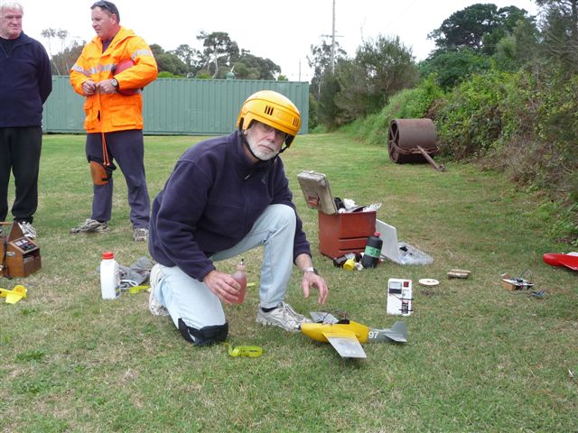 Some good bouts were flown in 1/2A combat for the 2012 Vic State Champs, plenty of cuts were taken & plenty of model damage as well. The ground was quite soft so engines were regularly delayed in restarting until dirt was removed from venturis. Model repairs after mid airs also cost all fliers airtime, no one had full airtime.