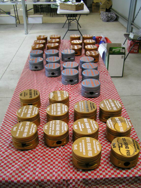 Trophy table with genuine Lycoming aircraft engine pistons !