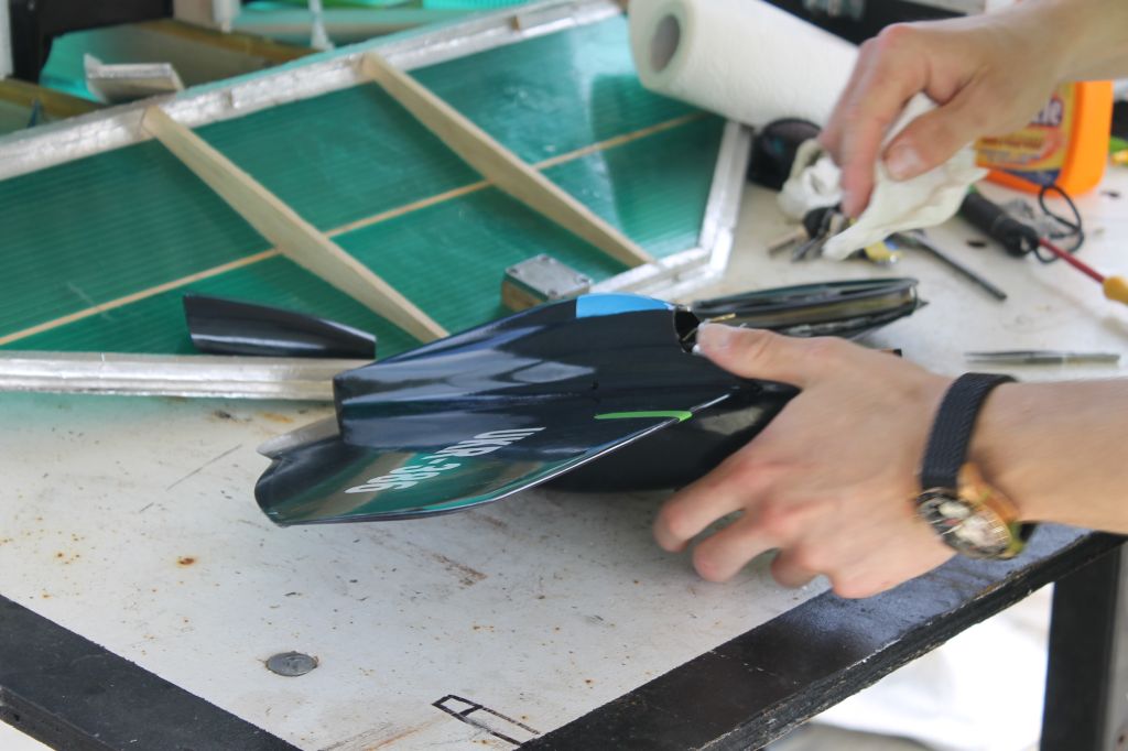 The facility had benches under a roofed area which allowed the competitors to work on their models in full view of the public.