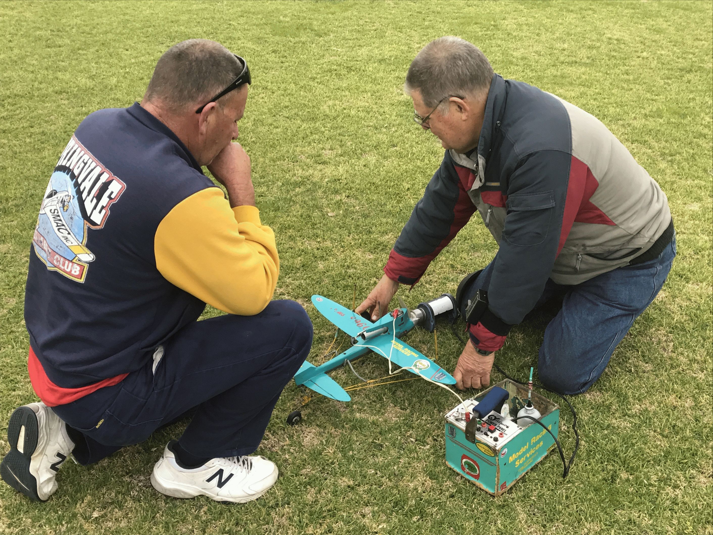 The other planned event for the day was Vintage Combat and Nathan Baddock and Les Spaltman had some model testing flights whilst the Combined Speed was in progress. At the conclusion of the Speed contest we had our customary BBQ lunch and chin wagging session before getting Vintage Combat underway.