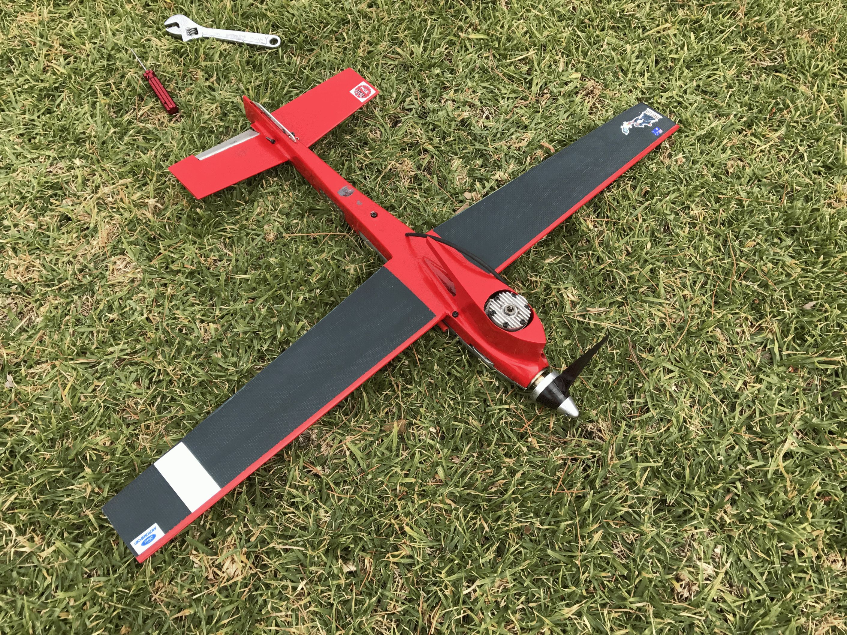 Murray had done some testing of his Nelson .29 model the week previous, he has had to find a lower Pitch prop for his piped motor for 10% nitro, he ended up using a SHERLOCK single blade that Stuart made for my .21 model years ago. I was going to try my [Dud] Dub Jett 40 in place of my ST X40, but it did not run right as the piston kept expanding. So instead, I fitted up another old piston and liner from all the worn out X40 bits to make a good fit and ran it in, managed to do 2 good flights slightly faster than I did in February.