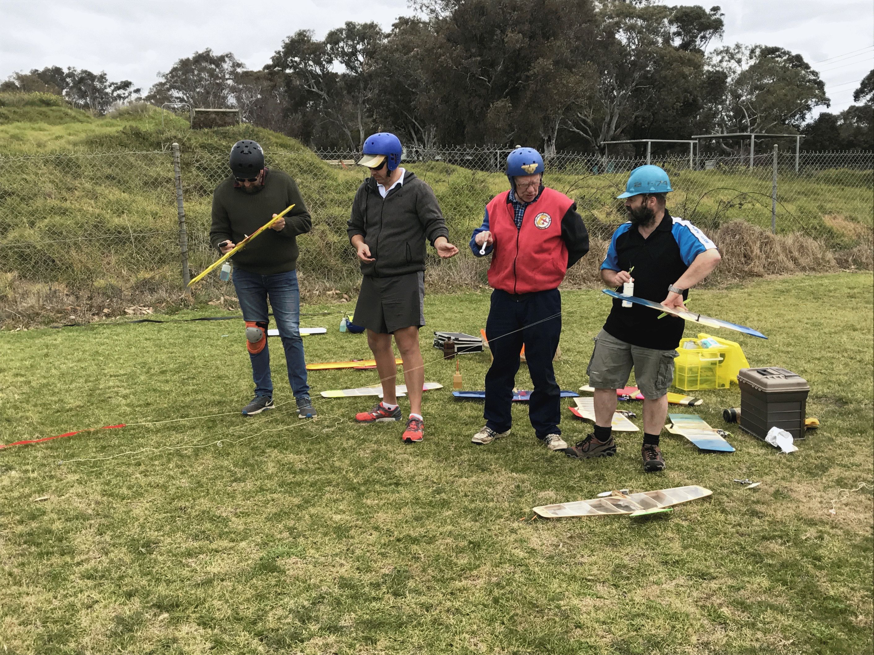 A few of our regular combateers did not turn up (probably because the weather forecast was not very promising) but the five that were in attendance took advantage of the pleasant fly-ing conditions that prevailed throughout the afternoon. The ground conditions were favoura-ble for combat, none of the gritty dust that was encountered at the West Wyalong Nationals and soft but not boggy earth. A draw was made and because of the odd num-ber of entrants Harry Bailey got a bye in the first round and then flew twice in round 2.