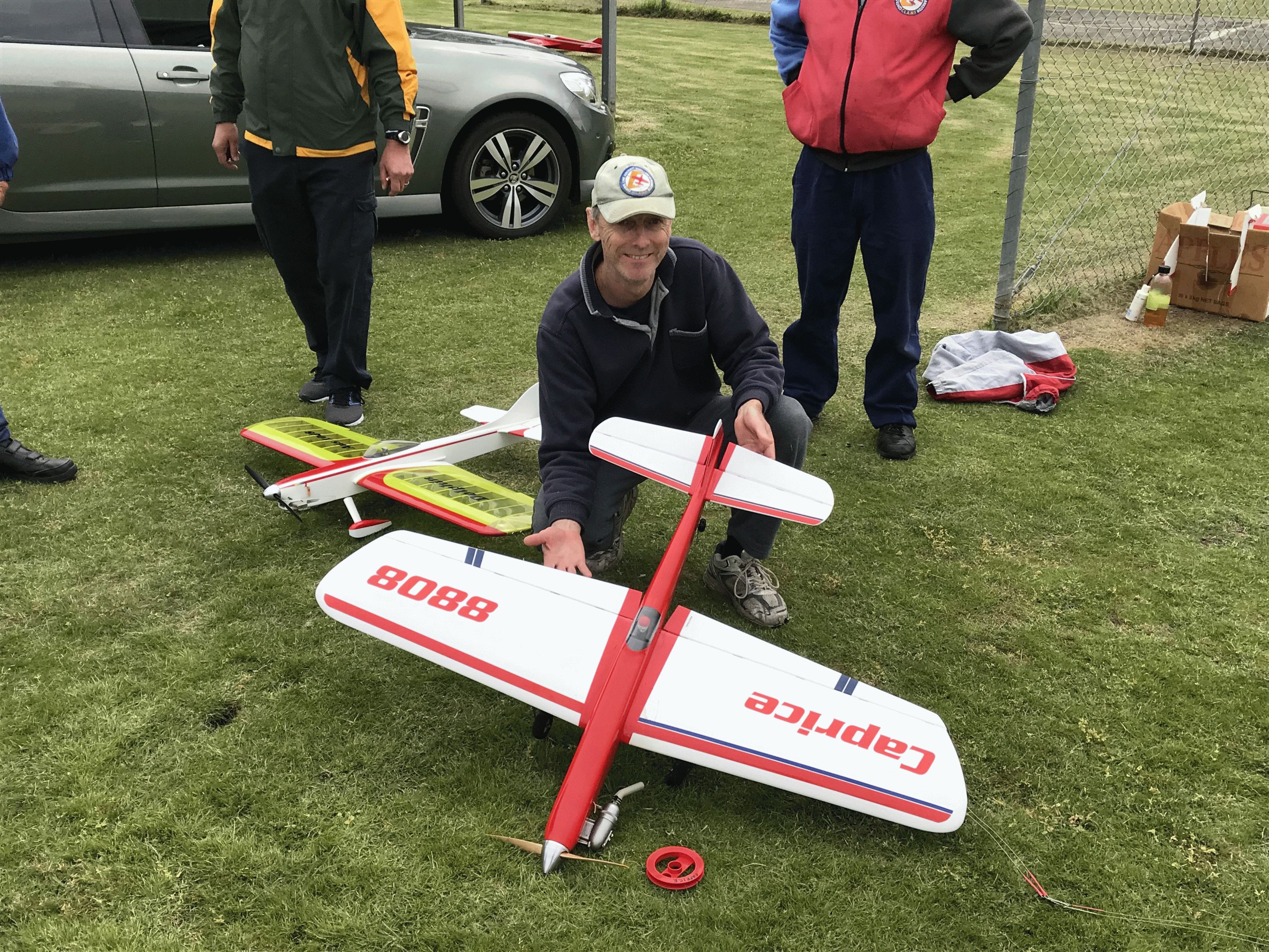 Some of the Stunter models were brought out of the cars but there was no rush to get a contest underway as the flying conditions were marginal. Every time it seemed that the wind was dropping off there would be a gust that was enough to give anyone second thoughts though eventually the six models and their pilots were persuaded to have a few flights.