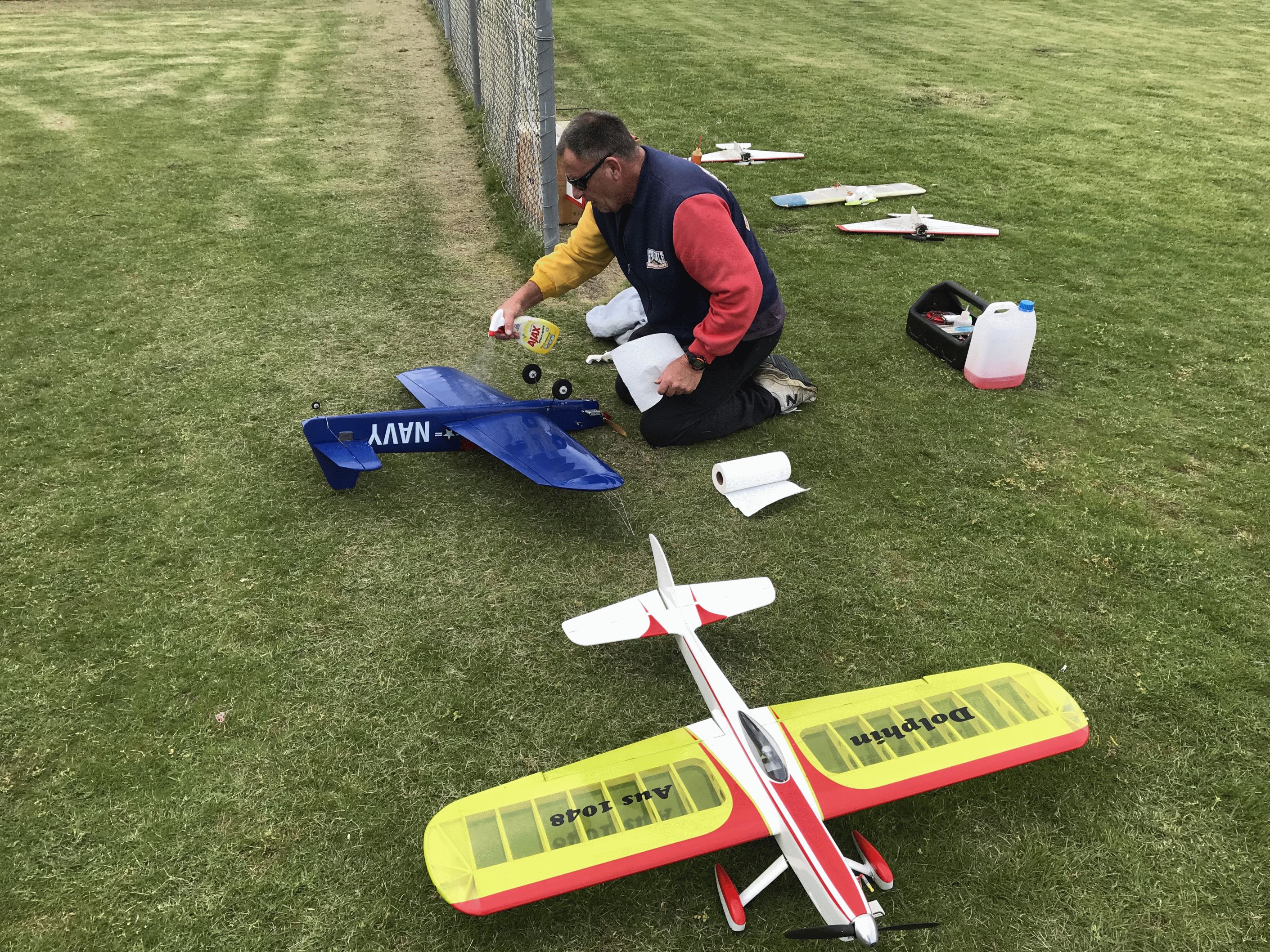 Ron Lacey was given the task of unofficial Judge and without the use of score sheets formed a personal opinion of who flew the best flights of the Classic Stunt pattern. Harry Bailey had flown a couple of flights of his “Dolphin/Double Star 40” before Ron did his assess-ments so based on the lack of eye witness judgement he gained 6th place. Murray Wilson flew some very nice flights with his electric motor powered Warbird and was granted 1st place.