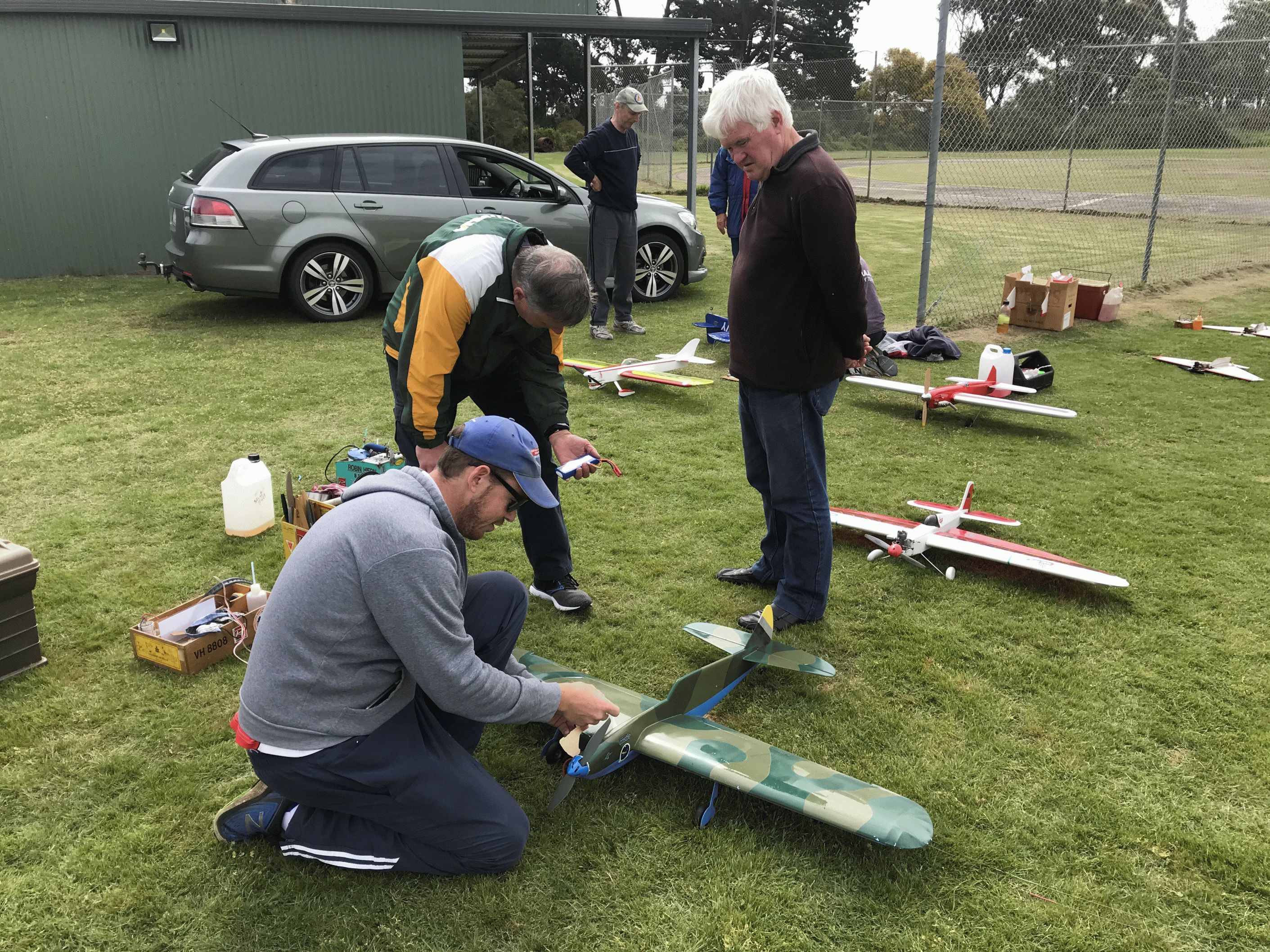 Some of the Stunter models were brought out of the cars but there was no rush to get a contest underway as the flying conditions were marginal. Every time it seemed that the wind was dropping off there would be a gust that was enough to give anyone second thoughts though eventually the six models and their pilots were persuaded to have a few flights.