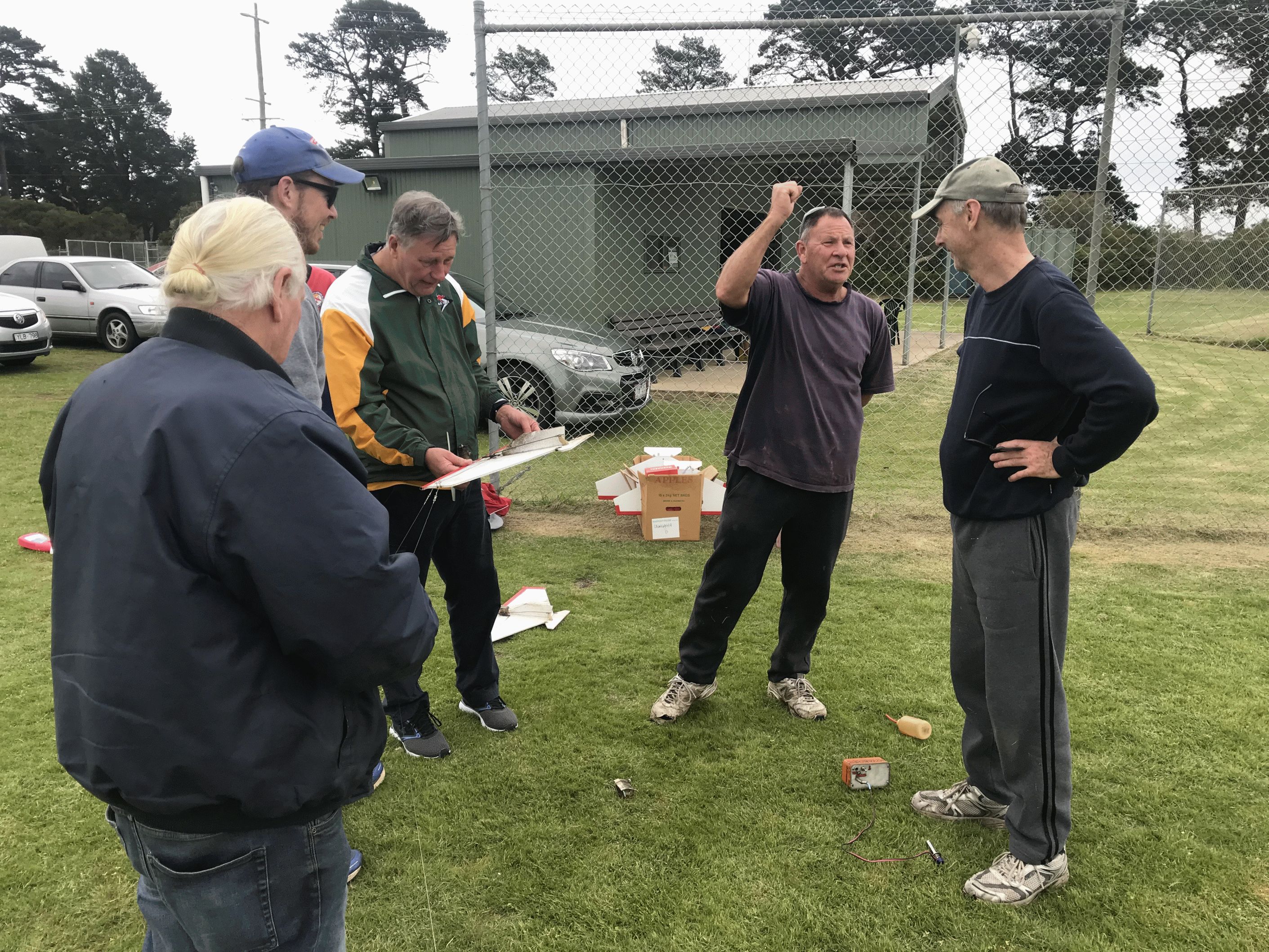 Some of the Stunter models were brought out of the cars but there was no rush to get a contest underway as the flying conditions were marginal. Every time it seemed that the wind was dropping off there would be a gust that was enough to give anyone second thoughts though eventually the six models and their pilots were persuaded to have a few flights.