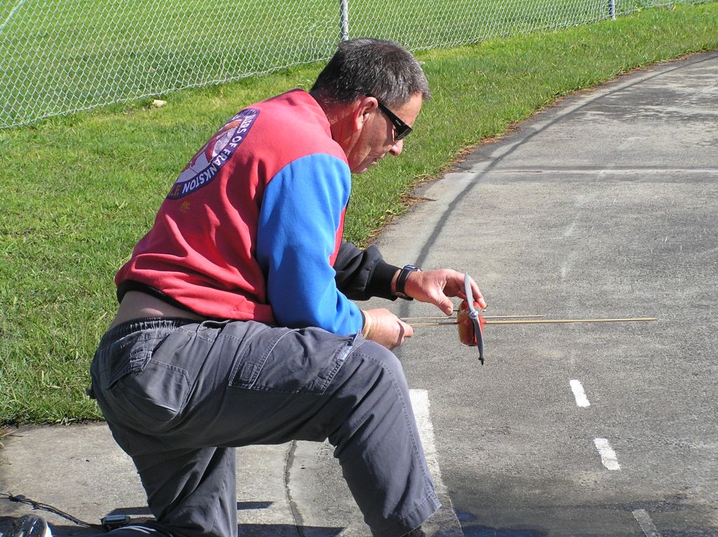 Mark fine tuning a Nelson 15 diesel powered Classic FAI team racer.