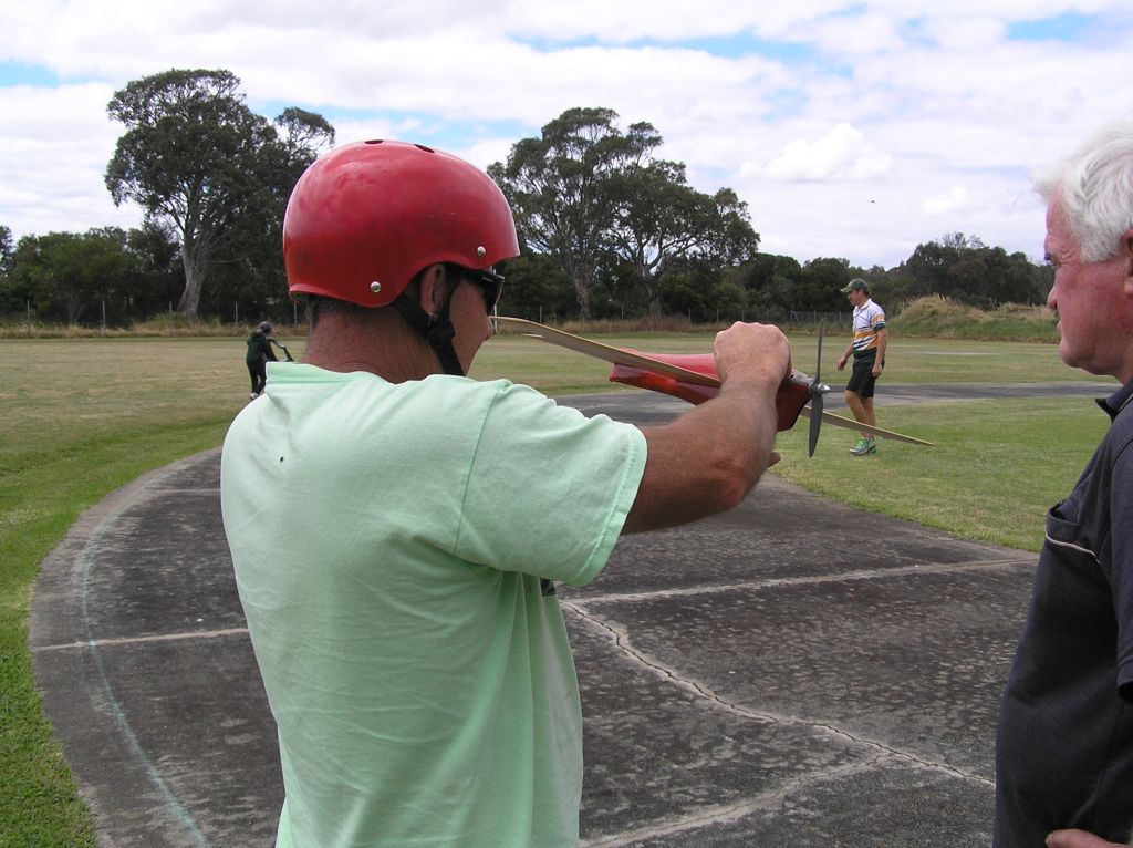 Classic B was also on the events list for the day but with only two models ready to race it was difficult to raise enough enthusiasm to move over to the big grass circle and mark out the flying lines so we all took a break from racing and some sports flying took place instead. Andrew Nugent was seen putting a Vintage Combat model through its paces.