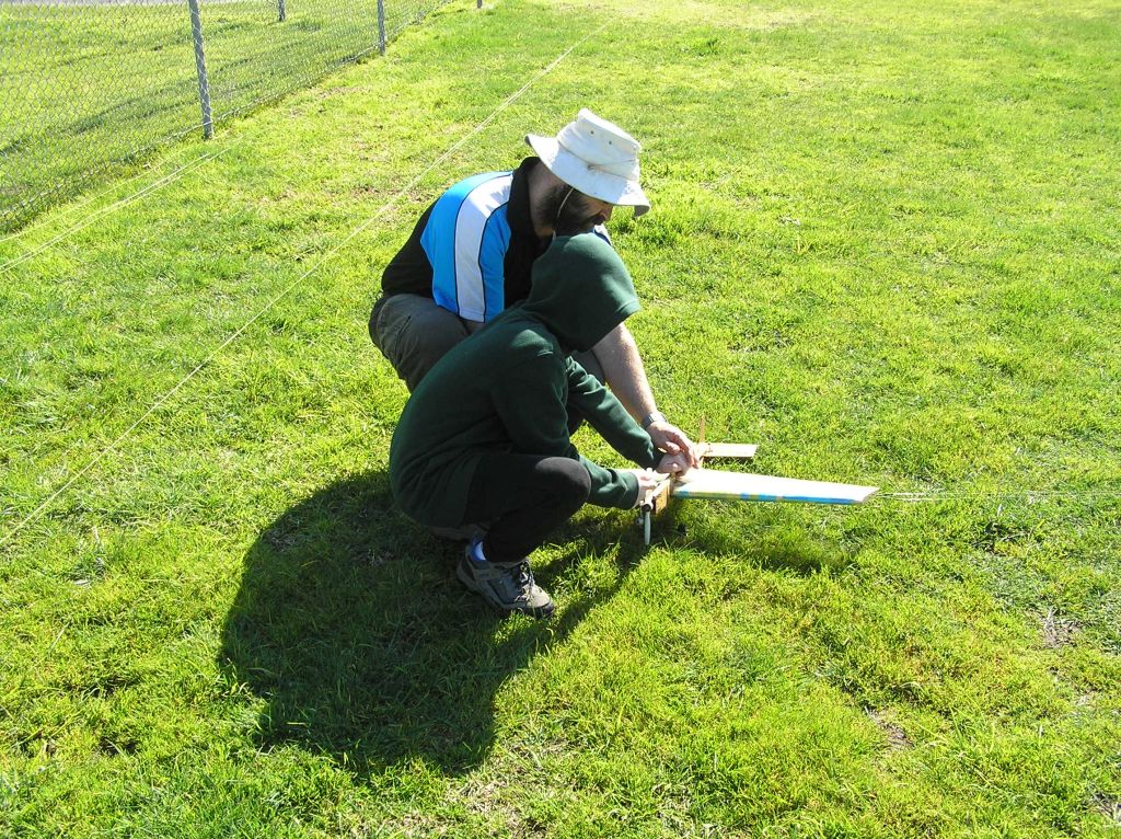 A junior receiving instruction on 'hand' starting a model engine.