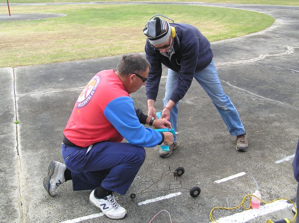 Wilson/Baker took a few practice tanks to get a race setting on the R250 in Neils “Olympian” but were eventually good to go. Mark had fitted a (tuned) Parra T3 in his “Dimpled Dumpling” and was giving the com-bination its first race outing. The engine had previously been used in a Classic FAI model but was yet to be tested for Vintage A.