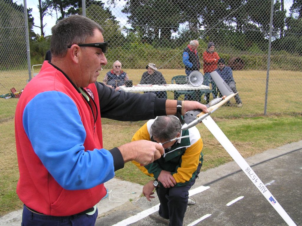 Wilson/Baker took a few practice tanks to get a race setting on the R250 in Neils “Olympian” but were eventually good to go. Mark had fitted a (tuned) Parra T3 in his “Dimpled Dumpling” and was giving the com-bination its first race outing. The engine had previously been used in a Classic FAI model but was yet to be tested for Vintage A.