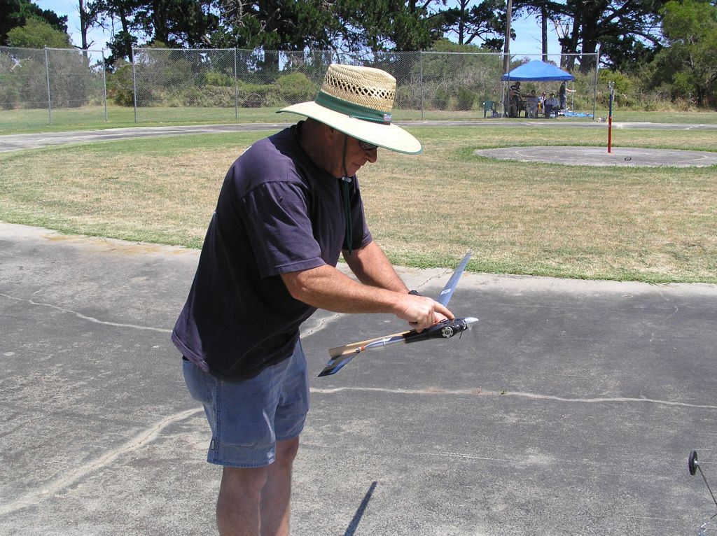 Mark runs up the F2A Speed model engine - watch your fingers there !