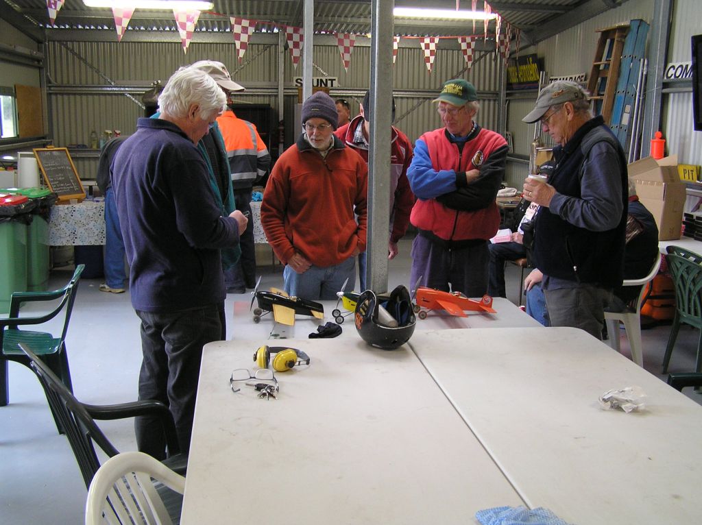 Wilson/Baker took a few practice tanks to get a race setting on the R250 in Neils “Olympian” but were eventually good to go. Mark had fitted a (tuned) Parra T3 in his “Dimpled Dumpling” and was giving the com-bination its first race outing. The engine had previously been used in a Classic FAI model but was yet to be tested for Vintage A.