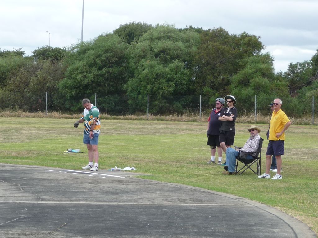 The large grass circle at Frankston is in lovely condition. It was put to good use by a small Classic Stunt group that included returnee Derek Pickard. It was Derek’s first contest since picking up a control line handle again and he was happy that he was able to complete the pattern without getting dizzy. Gavan Opperman had the misfortune of re-kitting his model. Thanks go to the contest judge, Peter Robert