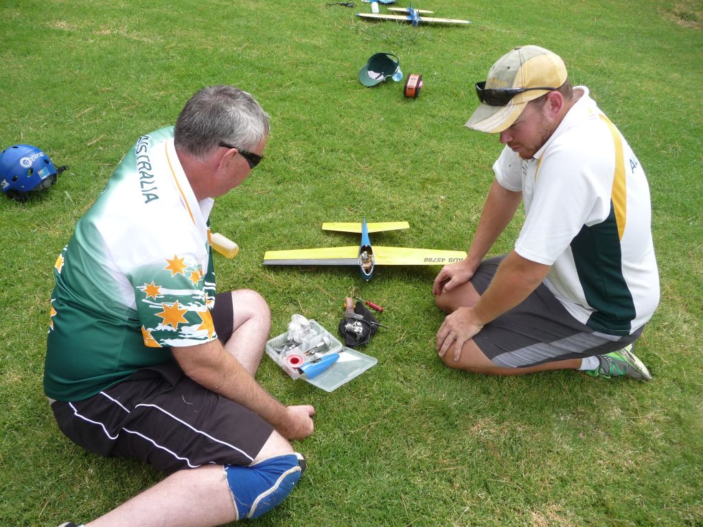 Thursday the 26th was Australia Day and by lunchtime most of our interstate visitors had arrived and had been practising with their models. The first event of the afternoon was F2C team race. It is interesting to note that none of the four teams entered had both team members from the same state of Australia and the teams were grateful to have the opportunity to get some serious racing up against top class opposition. Some very respectable race times were recorded by all entrants. Leknys/Reichardt almost failed to post a time after three failed pit stops in a row but managed a clean run at their last attempt.