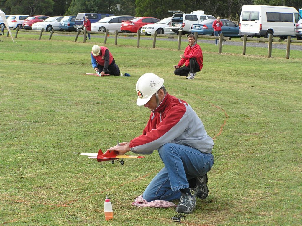 Now for the final. All were away smartly and everyone was going fast. It was always going to be close and any mishaps along the way were bound to be costly. The bouncy Knox grass is always a test. Two of the three pilots and one pitman contested the final of last years F2C World Championship. As is usual, to win a Vintage A final down under, you have to beat some of the world’s best team race competitors.