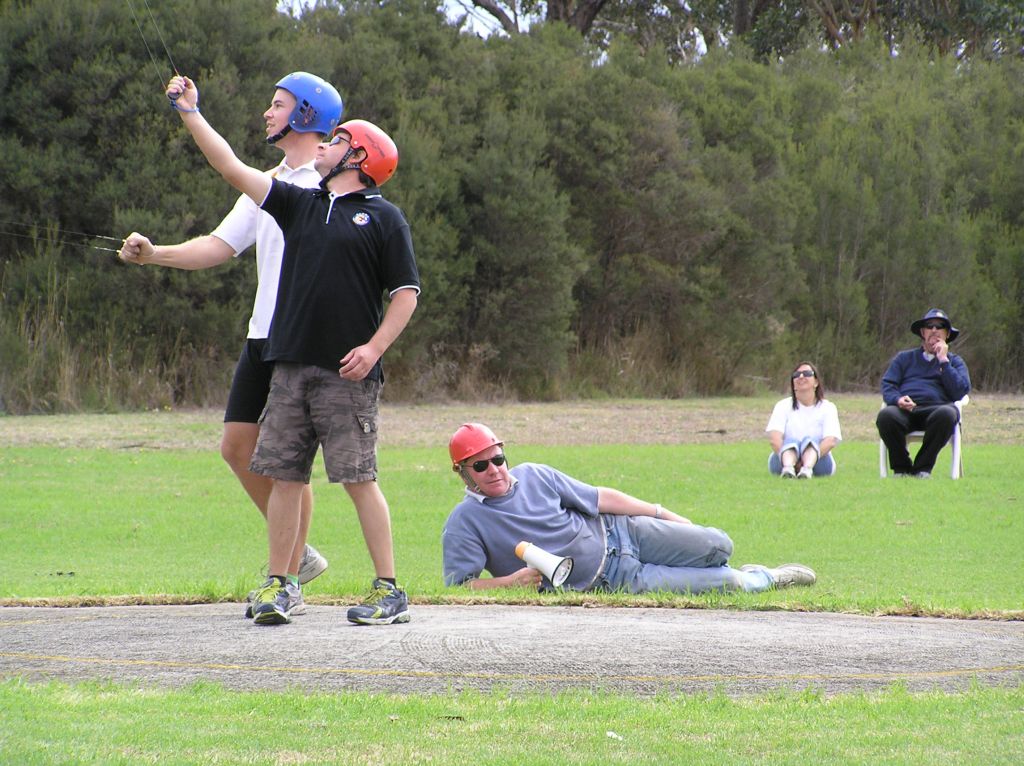 Grant Potter was flying for Julian Reichardt but the gear wasn’t working as it should for this highly regarded NSW team and the result was a couple of times in the 3.50’s.  My bet is that they had very little, if any, practice before this event.  Ken Hunting and Andy Kerr also were down on time spent flying but after a slow first round, they got their act together in round two when a 3.38 was written down beside their names in CD Keith Baddock’s score sheet.