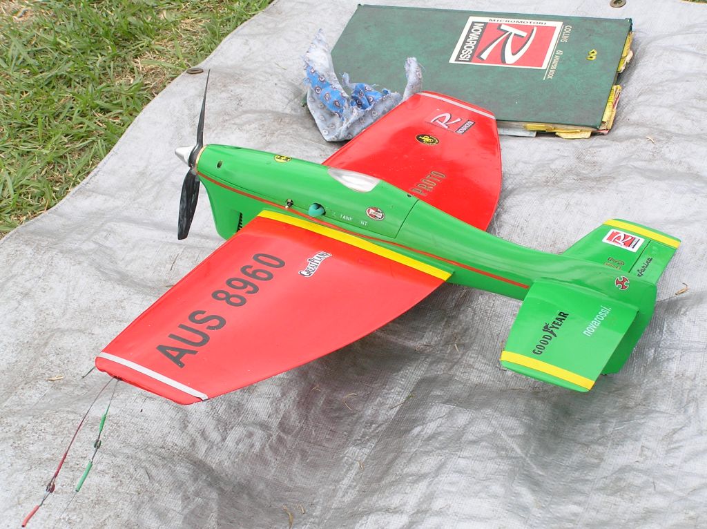 Now for the final.  All were away smartly and everyone was going fast.  It was always going to be close and any mishaps along the way were bound to be costly.  The bouncy Knox grass is always a test. Two of the three pilots and one pitman contested the final of last years F2C World Championship.  As is usual, to win a Vintage A final down under, you have to beat some of the world’s best team race competitors.