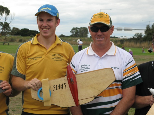 Nobby Baker and Murray Wilson were having some issues with landings but their superior airspeed made sure of a spot in the final. All the way from Queensland, Trent McDermott was fortunate to acquire the pitting services of F2C whiz Mark Ellins. Their very quick Dimpled Dumpling posted a FTD 3.17.62 in round one to qualify first for the big rumble.