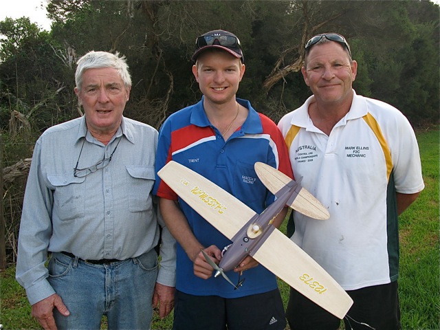 Nobby Baker and Murray Wilson were having some issues with landings but their superior airspeed made sure of a spot in the final.   All the way from Queensland, Trent McDermott was fortunate to acquire the pitting services of F2C whiz Mark Ellins. Their very quick Dimpled Dumpling posted a FTD 3.17.62 in round one to qualify first for the big rumble.