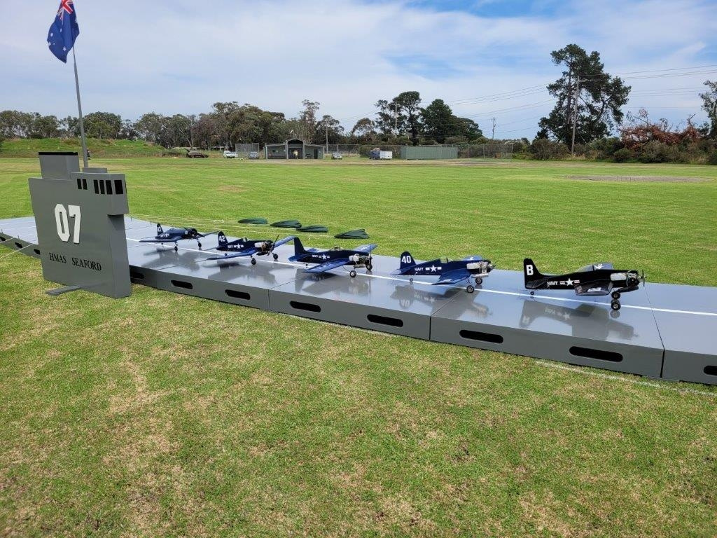Navy Carrier & Combined Stunt. It seems that the last official Navy Carrier competition at Frankston was on February 2015 with HMAS Seaford set up on the small grass circle close to the barn.