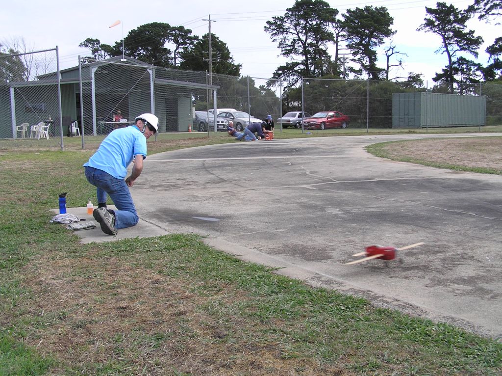 6 teams arrived to fly in good mild conditions. Fastest in Rd 1 was John Hallowell who teamed up with Ron Lacey for the Day(4.32.22). Ron has been away from the circle for many years. He is quickly regaining his touch. Next best was Colin Ray flying for Murray Wilson. Murray had tuning problems with his Parra and still managed a respectable 4.35. They improved to 4.26 in the second round still with problems.