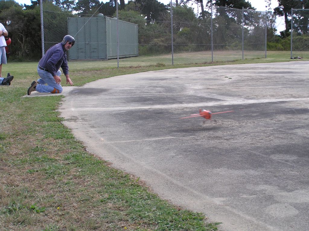 6 teams arrived to fly in good mild conditions. Fastest in Rd 1 was John Hallowell who teamed up with Ron Lacey for the Day(4.32.22). Ron has been away from the circle for many years. He is quickly regaining his touch. Next best was Colin Ray flying for Murray Wilson. Murray had tuning problems with his Parra and still managed a respectable 4.35. They improved to 4.26 in the second round still with problems.