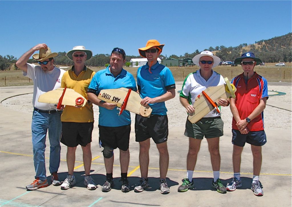 The inaugural Classic FAI T/R race commenced with 15 traditional styled team racers competing in a Concours  d’ Elegance.  Professionally judged by former FAI team race winner and stunt flyer Brian Ether and expert control line builder Tony Bonello, all the models were laid out for display on the concrete at the Twin Cities flying site. After some model rearranging where the judges put the best models to the front, and Ooo’s and Ahhh’s from the spectators, Paul Steins beautiful Espadon was the eventual winner. Paul accepted a bottle of Australian Sparkling wine as his prize. This was a classy start to the days racing. Thanks to both judges for taking their time to contribute to this first ever Nationals event.