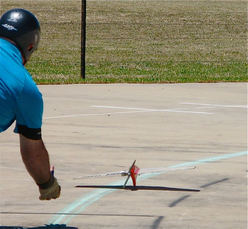 The inaugural Classic FAI T/R race commenced with 15 traditional styled team racers competing in a Concours  d’ Elegance.  Professionally judged by former FAI team race winner and stunt flyer Brian Ether and expert control line builder Tony Bonello, all the models were laid out for display on the concrete at the Twin Cities flying site. After some model rearranging where the judges put the best models to the front, and Ooo’s and Ahhh’s from the spectators, Paul Steins beautiful Espadon was the eventual winner. Paul accepted a bottle of Australian Sparkling wine as his prize. This was a classy start to the days racing. Thanks to both judges for taking their time to contribute to this first ever Nationals event.