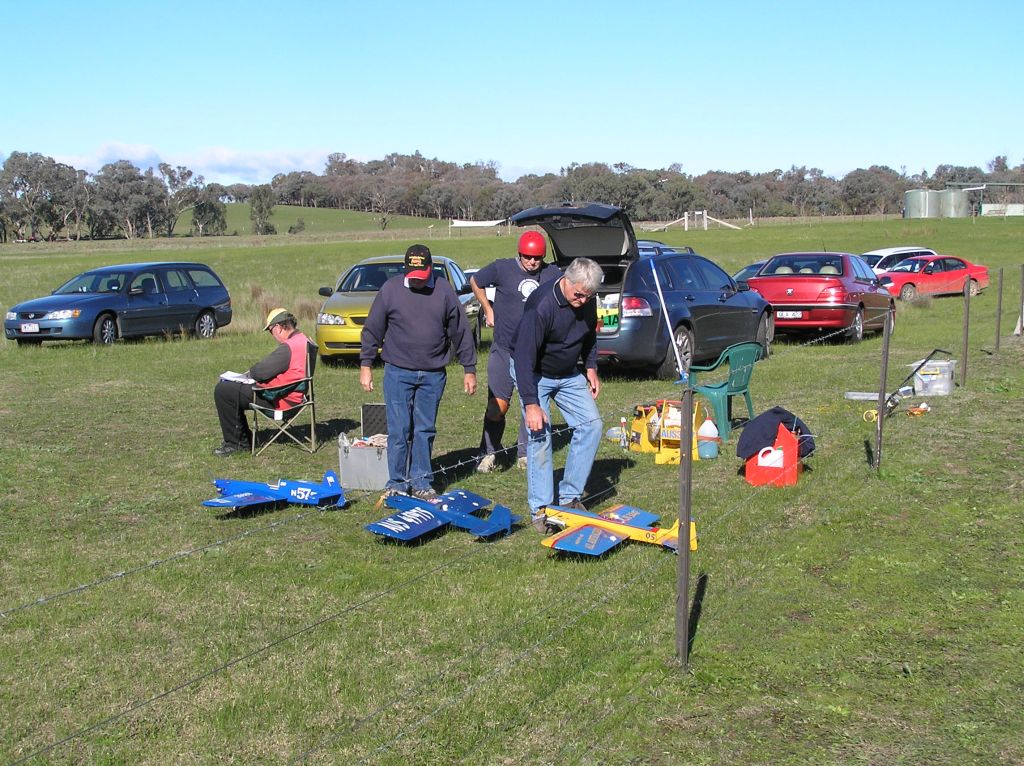 Classic FAI Team Race – What a fantastic weekend. We were all delighted to experience beautiful  weather  after leaving soggy Melbourne for the June Albury comp. 6 entries arrived to fly Classic FAI T/R. Of note were the 2 new Parras of John Hallowell and Paul Stein. These engines seem fairly easy to set which will make racing them easy and enjoyable.