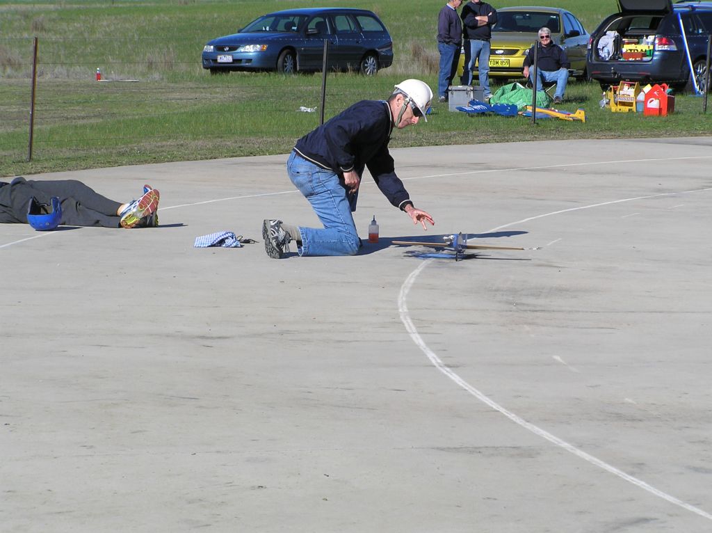 Classic FAI Team Race – What a fantastic weekend. We were all delighted to experience beautiful  weather  after leaving soggy Melbourne for the June Albury comp. 6 entries arrived to fly Classic FAI T/R. Of note were the 2 new Parras of John Hallowell and Paul Stein. These engines seem fairly easy to set which will make racing them easy and enjoyable.