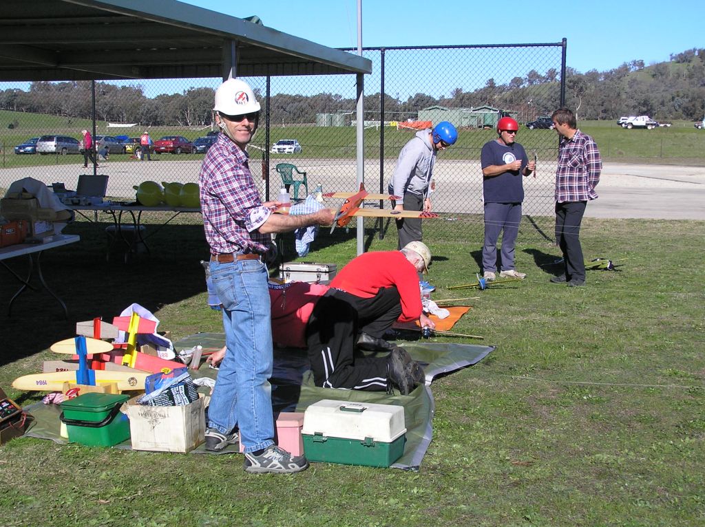 Classic FAI Team Race – What a fantastic weekend. We were all delighted to experience beautiful  weather  after leaving soggy Melbourne for the June Albury comp. 6 entries arrived to fly Classic FAI T/R. Of note were the 2 new Parras of John Hallowell and Paul Stein. These engines seem fairly easy to set which will make racing them easy and enjoyable.