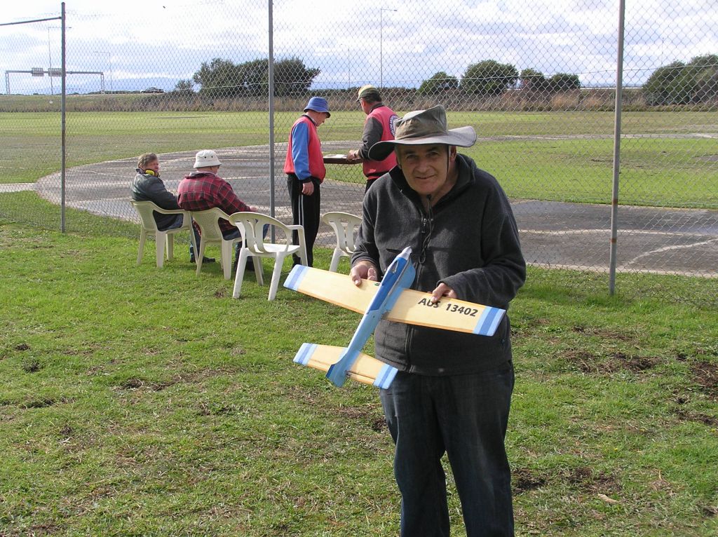 Speed, Classic B Team Race. Classic B club racing was scheduled at CLAMF on Sunday, 19th May. 2013.  Weather could best be described as inclement with frequent early showers sweeping across the pristine flying field.   The anticipated conditions probably stopped a few extra competitors from arriving, including Gavan Opperman who was put off coming down by severe wind and rain squalls at his house for most of the morning.