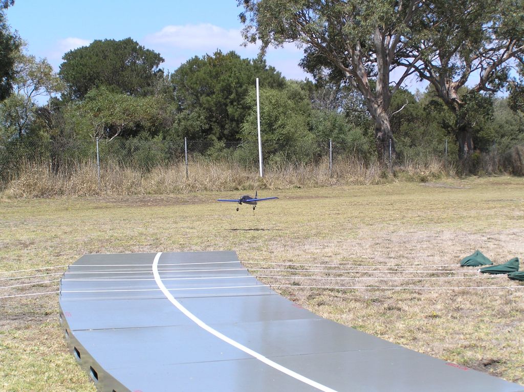 Peter Koch was high scorer with his TT 42 powered Skyraider, mainly due to hooking a wire on his second attempt. Greame and Paul both had a few problems with their HP40 powered Bearcats, Graeme with a hook that didn’t want to stay in the down position and Paul having trouble hooking a wire or sliding off the deck. The usually reliable old Merco 29 in my Wildcat didn’t want to play ball this time and had a couple of flame outs. Big thanks to Peter K and the rest of the guys for their help in setting up and dismantling the deck. Hopefully next time we’ll get some calm weather as well as a few more competitors.
