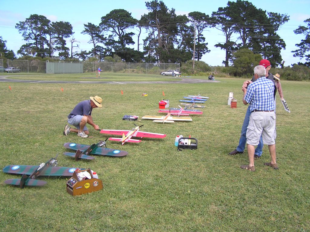 Weather was reasonable with a constant southerly breeze that had the unfortunate effect of carrying dust across from the mini bike track next door. The cars in our field were covered with fine dust and the conditions for running model engines was far from ideal. Hopefully we can encourage the bikes management to be more pro-active with track watering on future days like this.