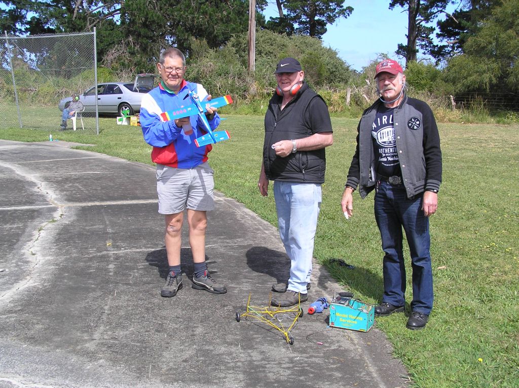 To wind up the day’s program, it was time for 27 Goodyear. Only three teams took part and two rounds were flown.  Graeme and Murray Wilson recorded  a very fast 5.07.22 with a Super Tigre G20D.   Paul Stein and Mark Ellins were going well until the last tank of the first heat. It was then that Paul noticed the broken fuzz… right behind the wing and severely hampering the down control. Paul could see the crack from the centre circle… Scary stuff!    Harry Bailey and Peter Roberts were using a Nelson and easily getting all the necessary speed.