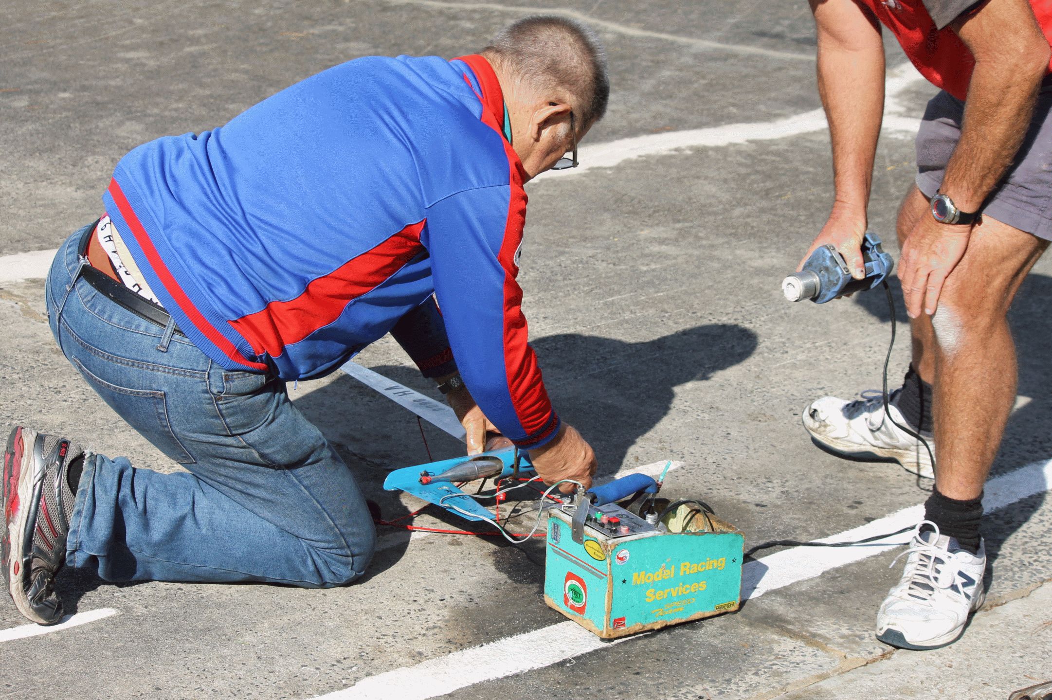 Robin Hiern was the first to fly with his Proto model. He was hoping to produce enough speed to try to re-claim the class record that was set by Francis Jacobsen at the recent Nationals. His one and only flight was not a good setting and after a model inspection the model was found to have a breakage in the engine mounting plate.